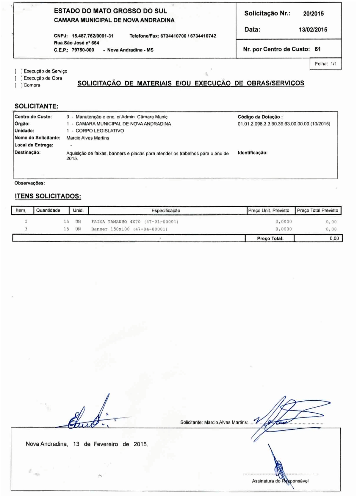 Solicitação 20-2015 - Faixas e banners